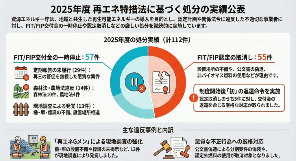 回顾2025财年的处置表现,通过现场检查(可再生能源G-men)以及与其他法律法规的合作,行政监控网络已经变得极其密集。